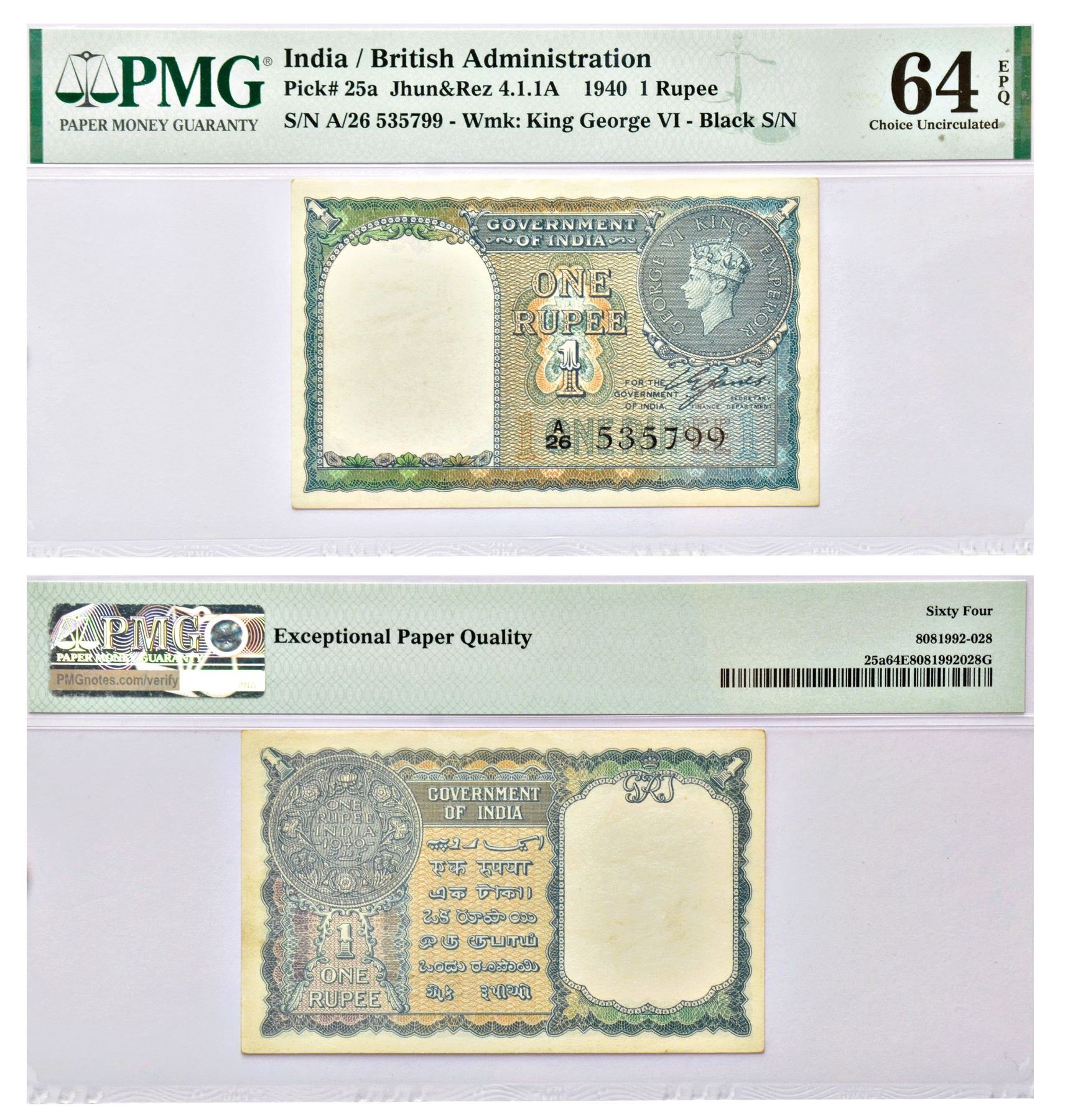 British India, George VI, 1 rupee, 1940, signed by C.E. Jones, without inset, serial no.: A26 535799 in black, J&R 4.1.1A.