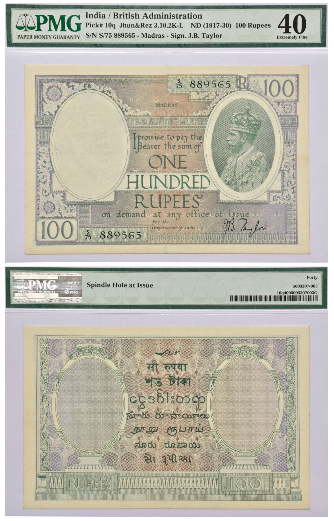 Paper Money: George V, 100 rupees, Madras, ND (1928), signed by J.B. Taylor, serial no.: S75 889565