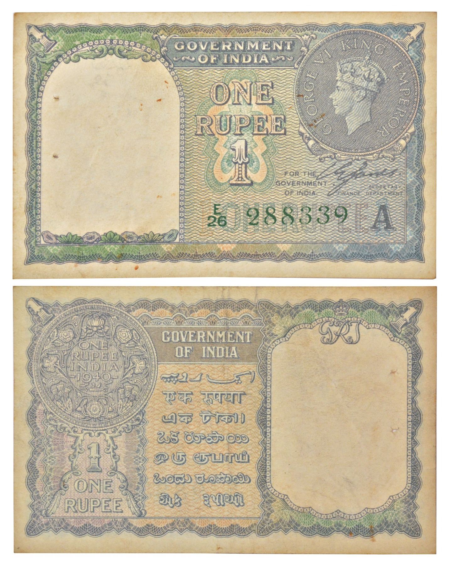 George VI, 1 rupee, 1940, signed by C.E. Jones, inset 'A', serial no.: E26 288339, in green, J&R 4.1.1B.
