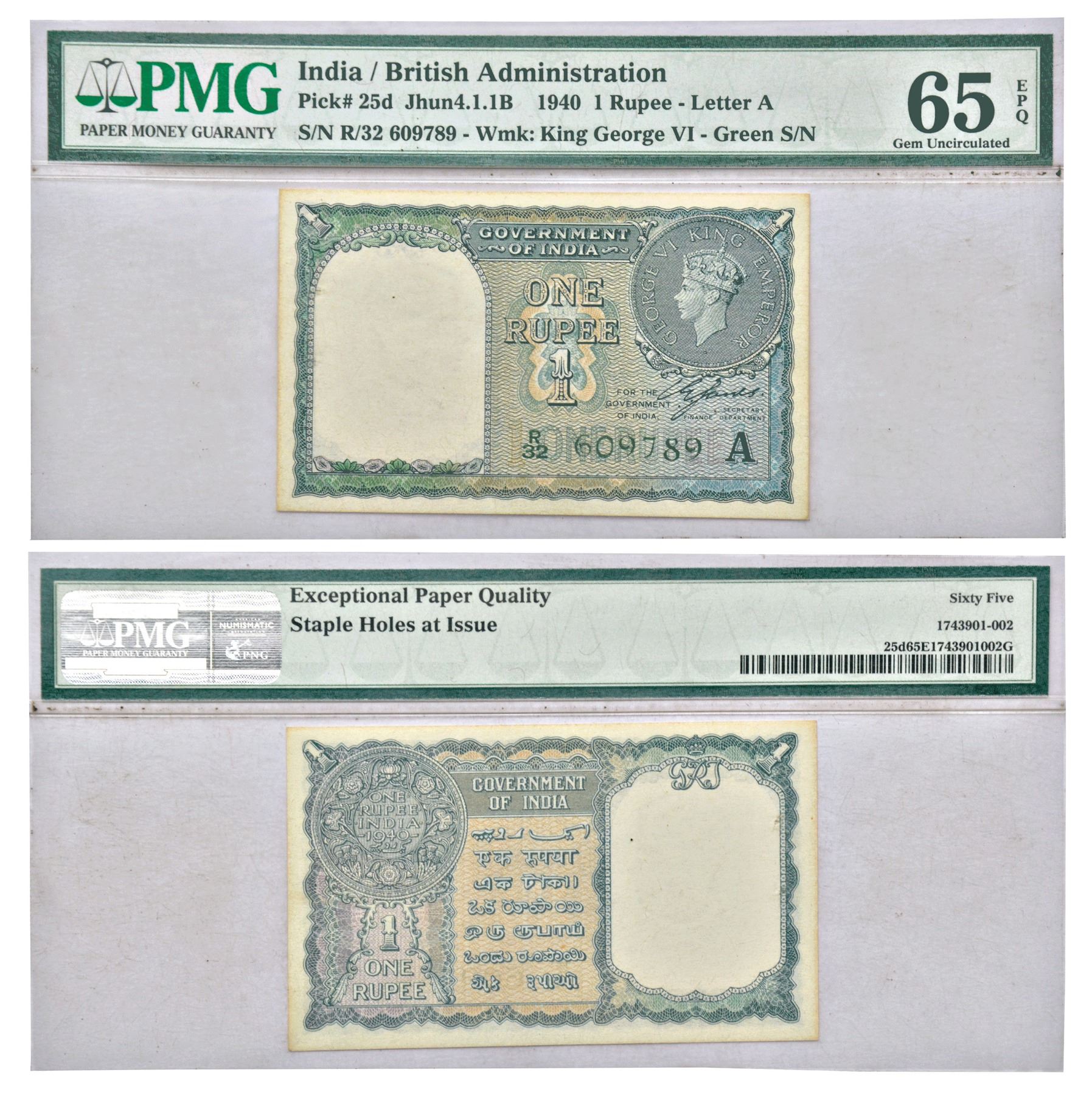 George VI, 1 rupee, 1940, signed by C.E. Jones, inset 'A', serial no.: R32 609789 in green. J&R 4.1.1B.