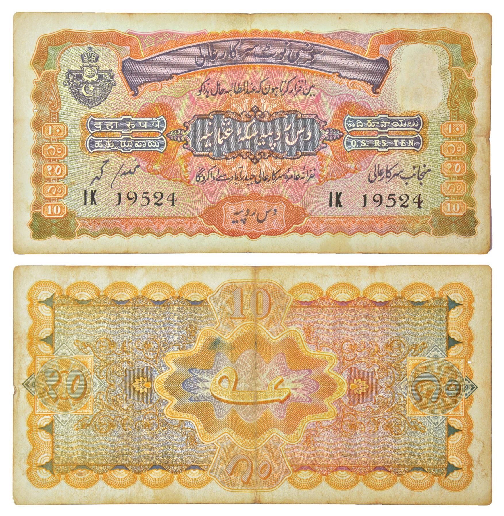 Paper Money: Hyderabad, 10 rupees, 2nd issue, ND (1939), signed by Ghulam Muhammad, 'sign 3' type,