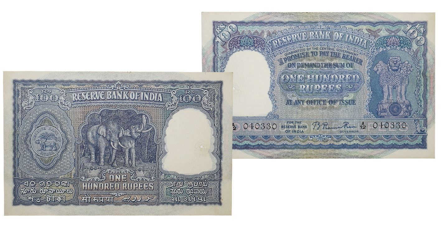 Paper Money: Republic India, 1950, 100 Rupees, 1st Issue, Bombay Circle, Signed by B. Rama Rao