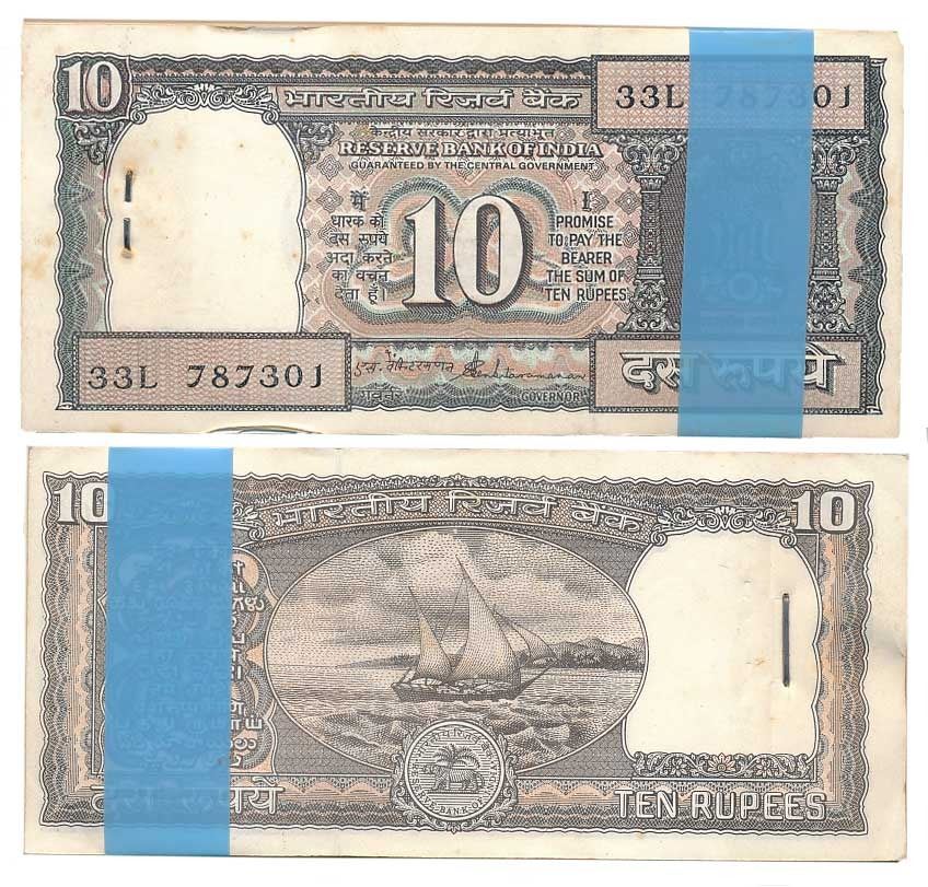 Rupee 10, Pack of 100 Notes, “D-30”, Type 6.4.10, Signed by S. Venkitaraman, Prefix 33/L (R IPM # 6.4.10.2B). Uncirculated. 100 Notes.