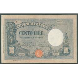 Paper Money of Italian Kingdom - Vittorio Emanuele III (1900-1946) - Biglietto di Banca da 100 L. "Grande B - Azzurro" - DM 22/04/1930 - 1930 - Piccoli strappi lungo i bordi