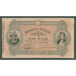 Paper Money of XIX Century after Italian Unification - Banco di Sicilia - 1000 L. 01/07/1885 - 1885 - Negli ovali del recto il Nettuno di Palermo e l'Italia turrita - Biglietto estremamente raro e di conservazione eccezionale