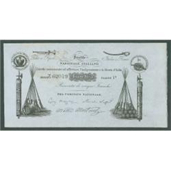 Paper Money of XIX Century before Italian Unification - Buoni patriottici risorgimentali - 5 Franchi - Prestito Nazionale Italiano (Mazziniano) - 1852 - Senza filigrana