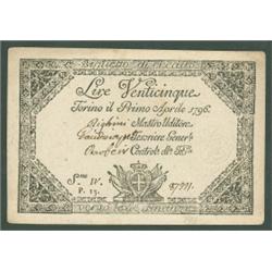 Paper Money of XVIII Century - Biglietti di credito per le Regie Finanze - 25 L. 1/4/1796 II tipo - 1796 - Tre esemplari di ottima qualità