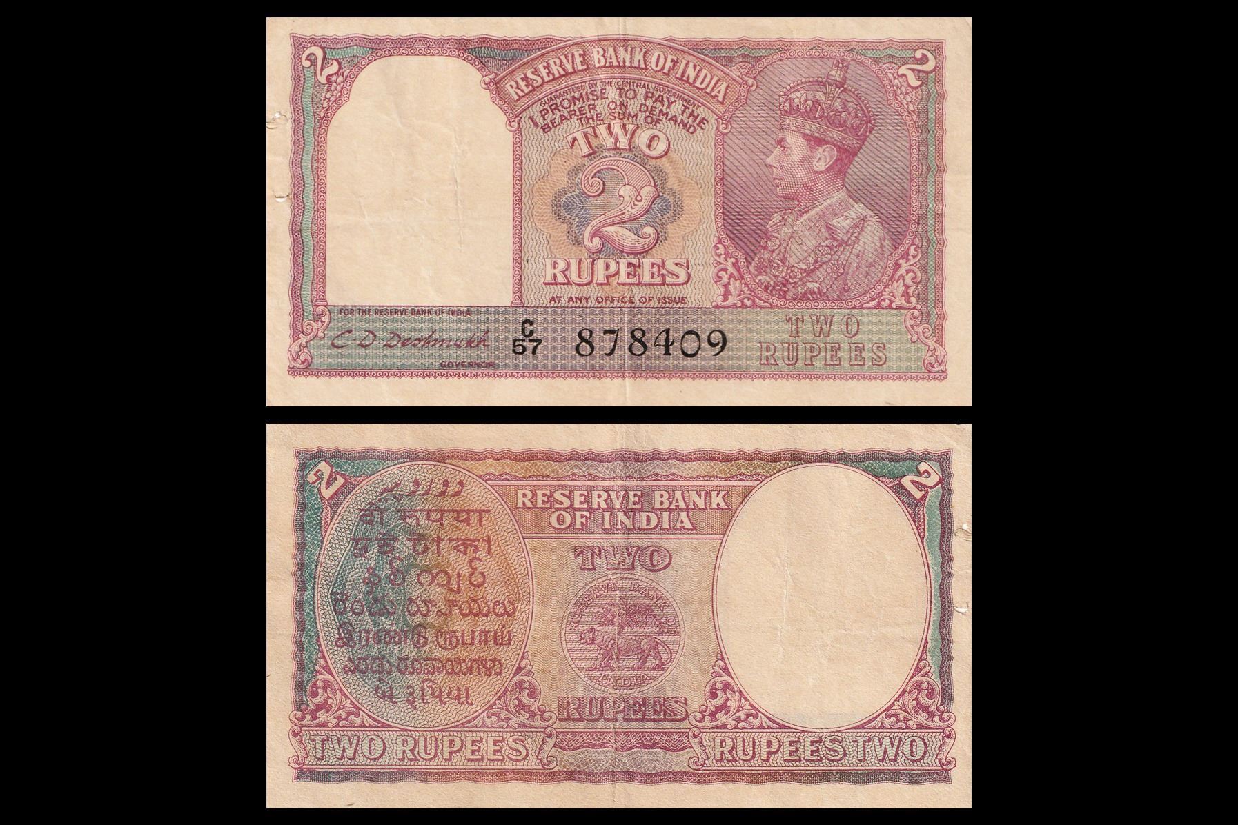 British India, George VI, Two Rupee, Singed by C.D. Deshmukh, C57 878409, Single centre fold, Extra