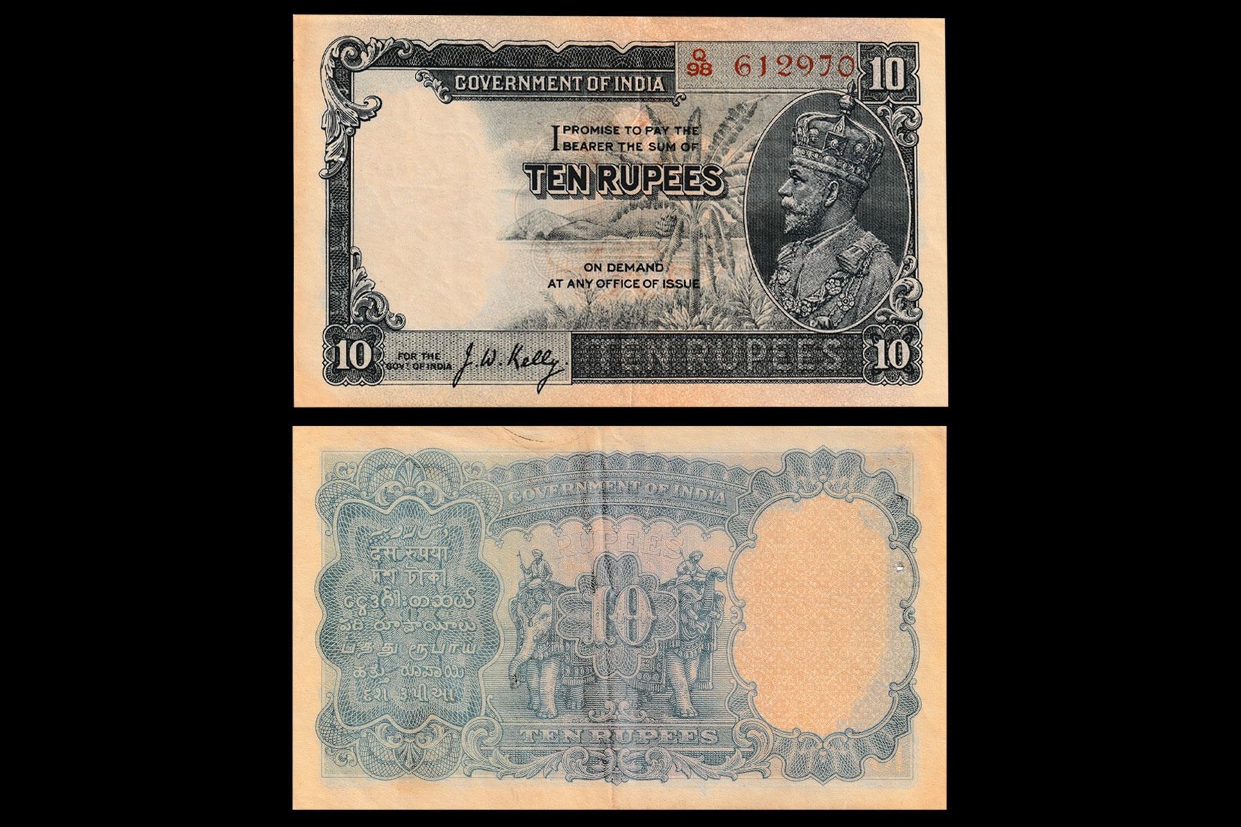British India, George V, Ten Rupee, Signed by J.W. Kelly, Q98 612970,Extra Fine+, Rare