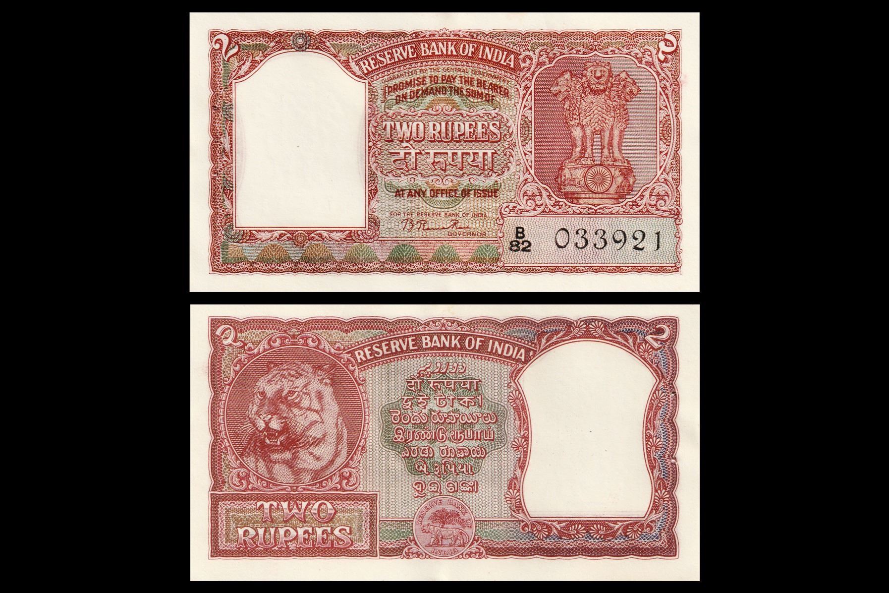 Republic India, 2 rupees, Signed by B Rama Rao, 1950, B82 033921, Uncirculated, Rare