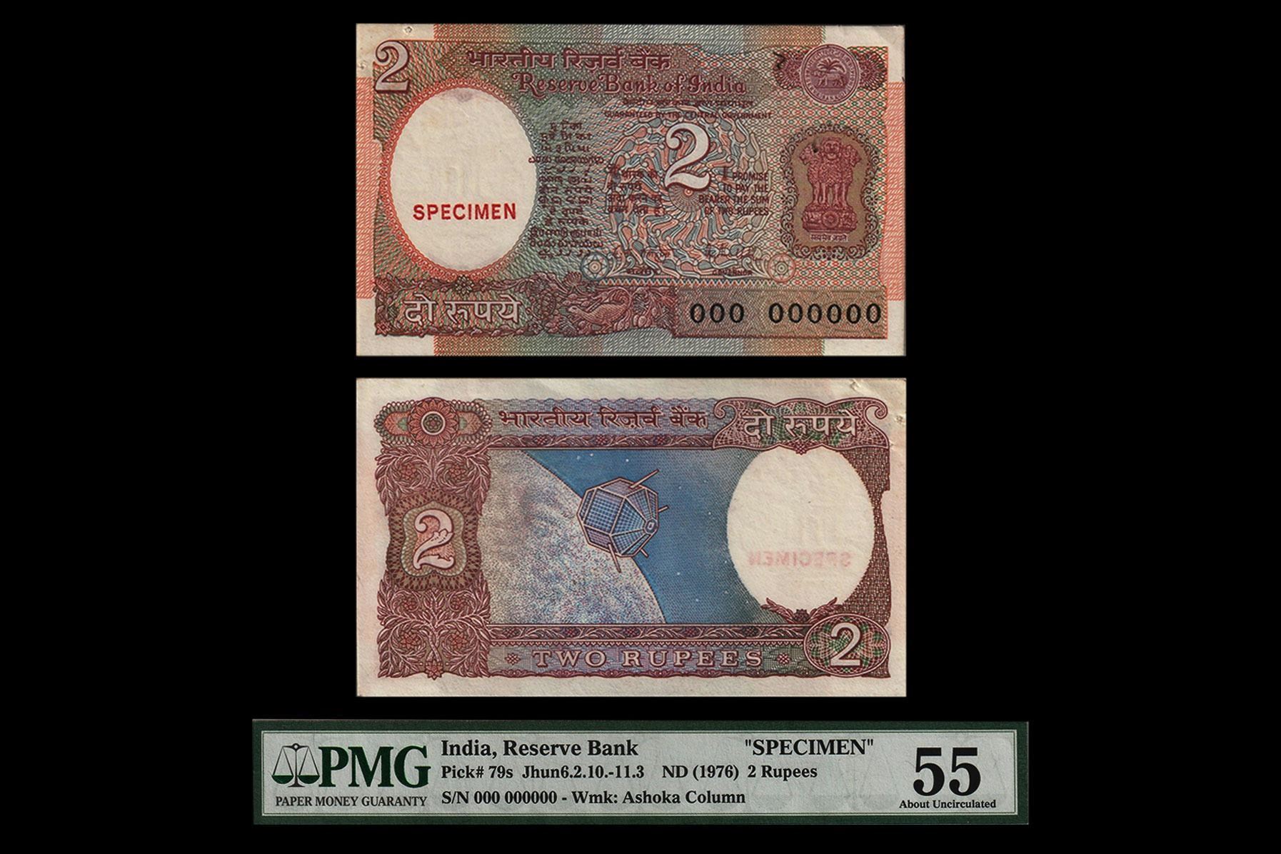 Republic India, 2 Rupees, SPECIMEN Issue, Signed by RN Malhotra, 000 000000, Graded by PMG as