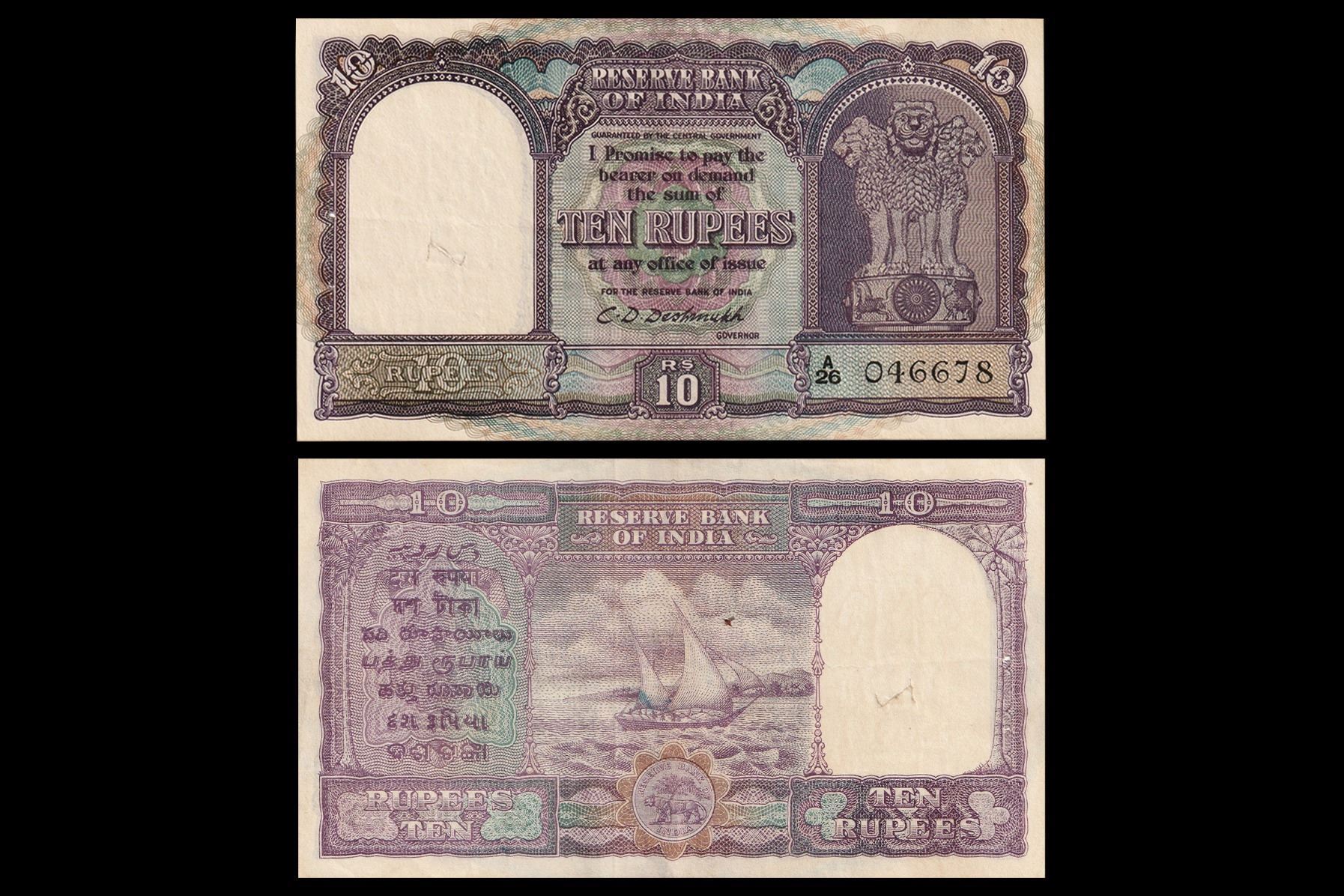 Republic India, 10 rupees, Signed by C.D. Deshmukh, A26 046678, First Issue, 1950, Almost Uncirculated,