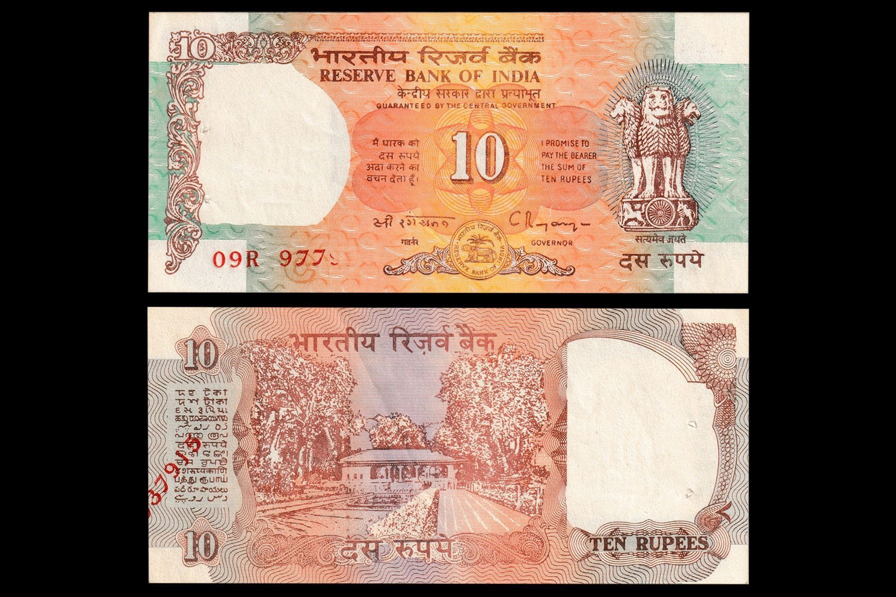 Republic India, Ten Rupee Error Note, Signed by C Rangarajan, 09R 977(915), "A partial serial number is