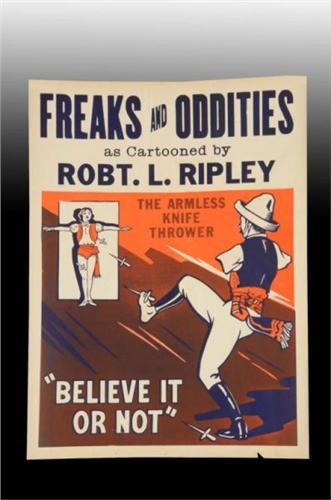 Description Circa 1940. Original poster featuring "The Armless Knife Thrower". Condition (Excellent). Size 21" x 28".