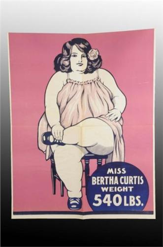 Description Circa 1940. Original poster featuring Big Baby Bertha Curtis. Condition (Excellent). Size 42" x 54".