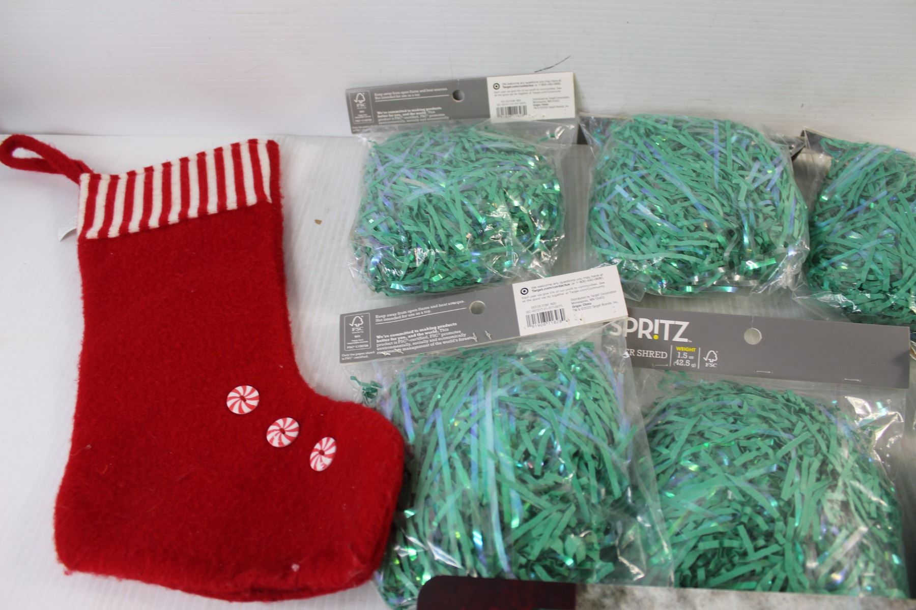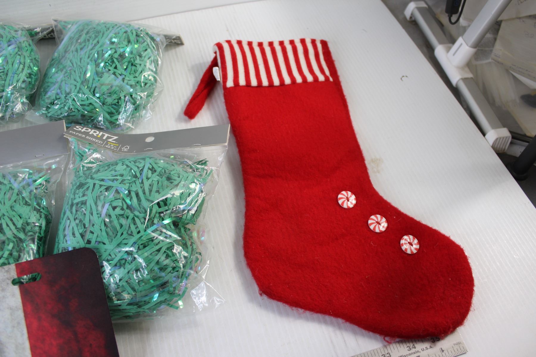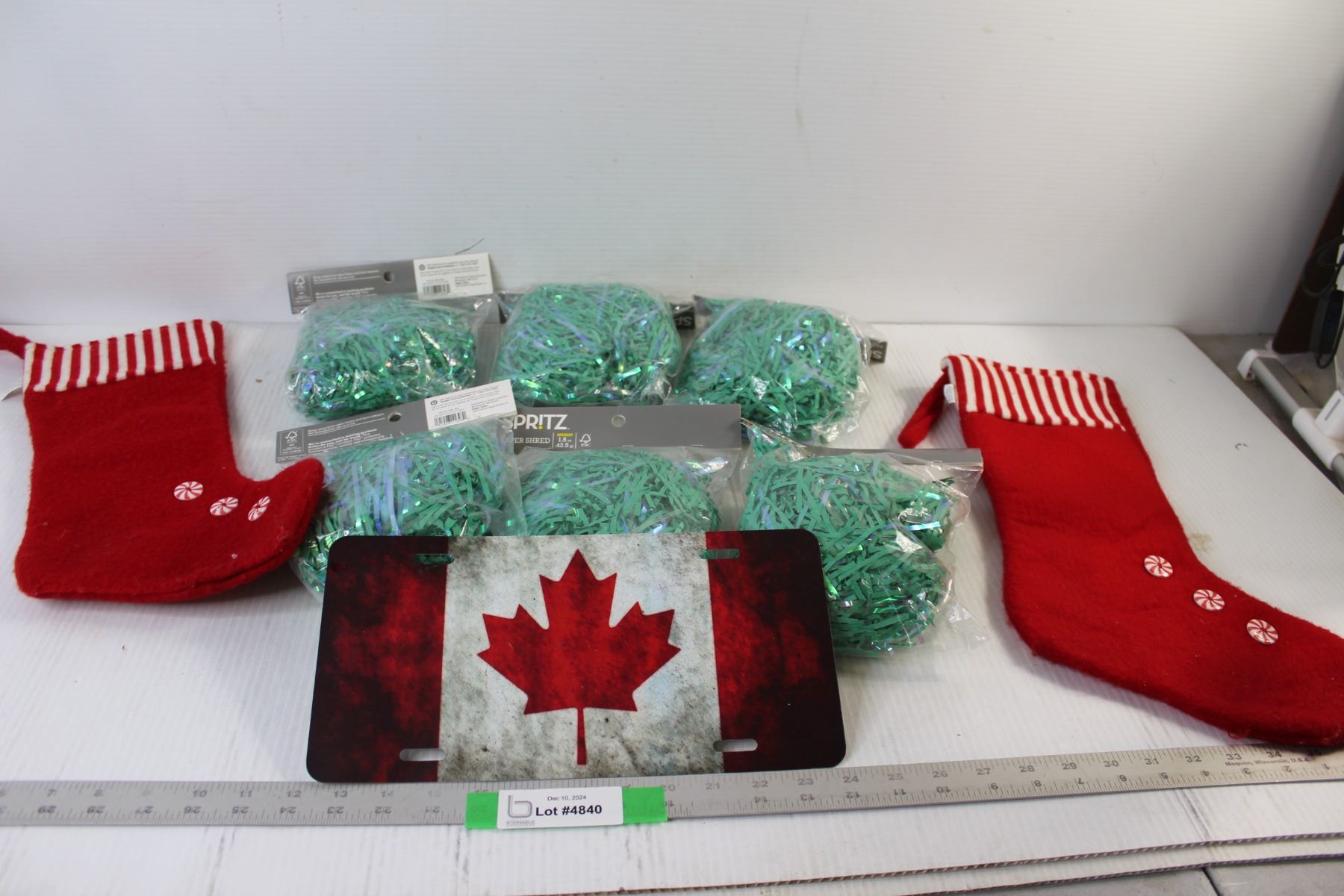 Paper Shred, (2) Christmas Stockings, Canadian Sign - 12" x 6"