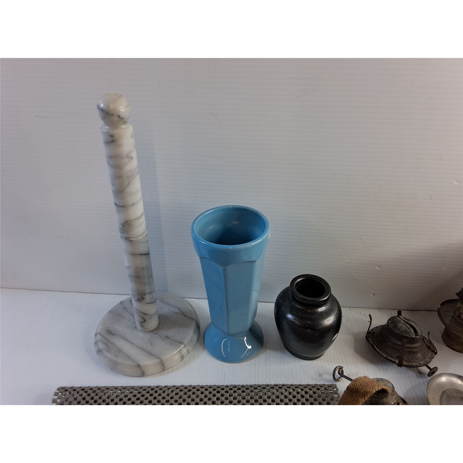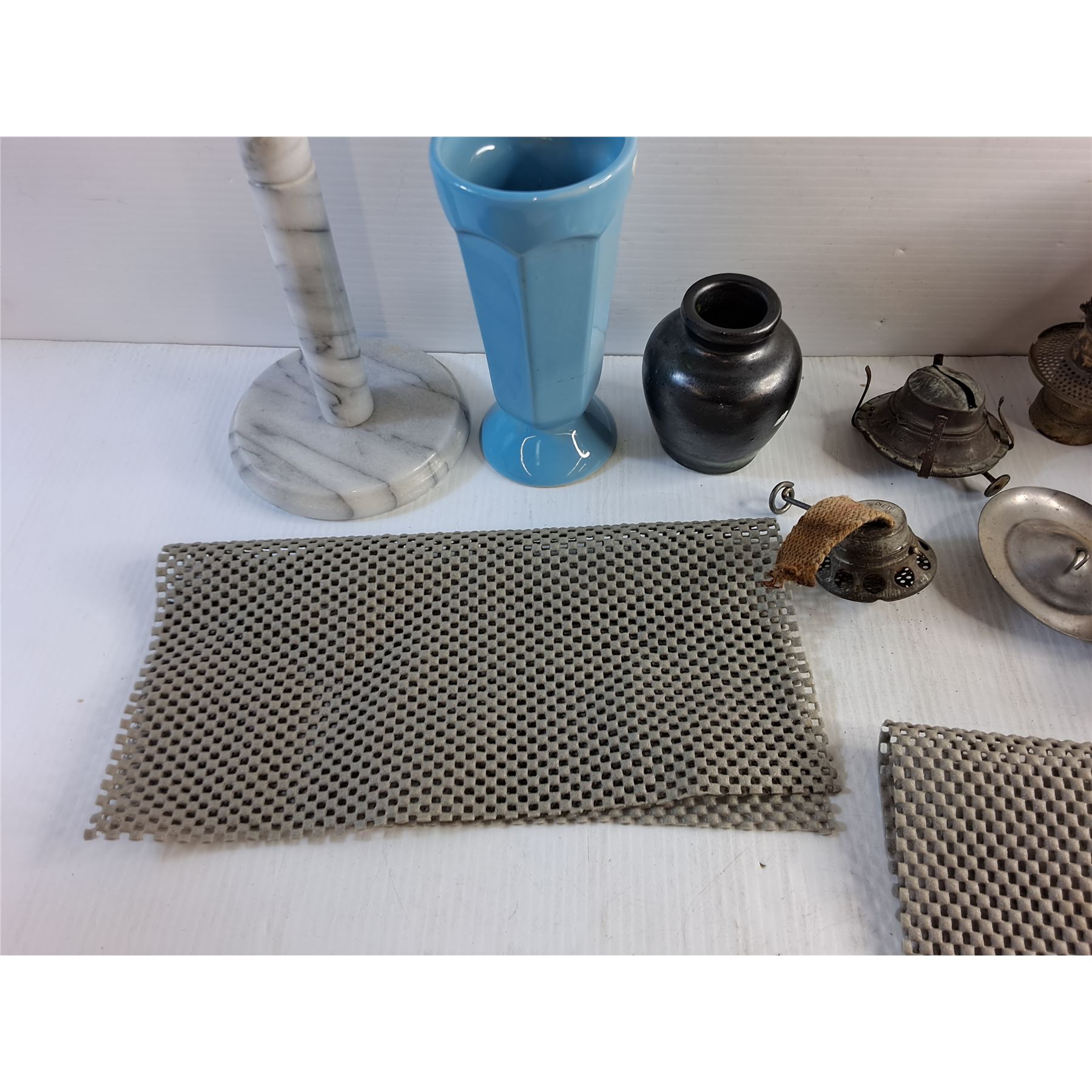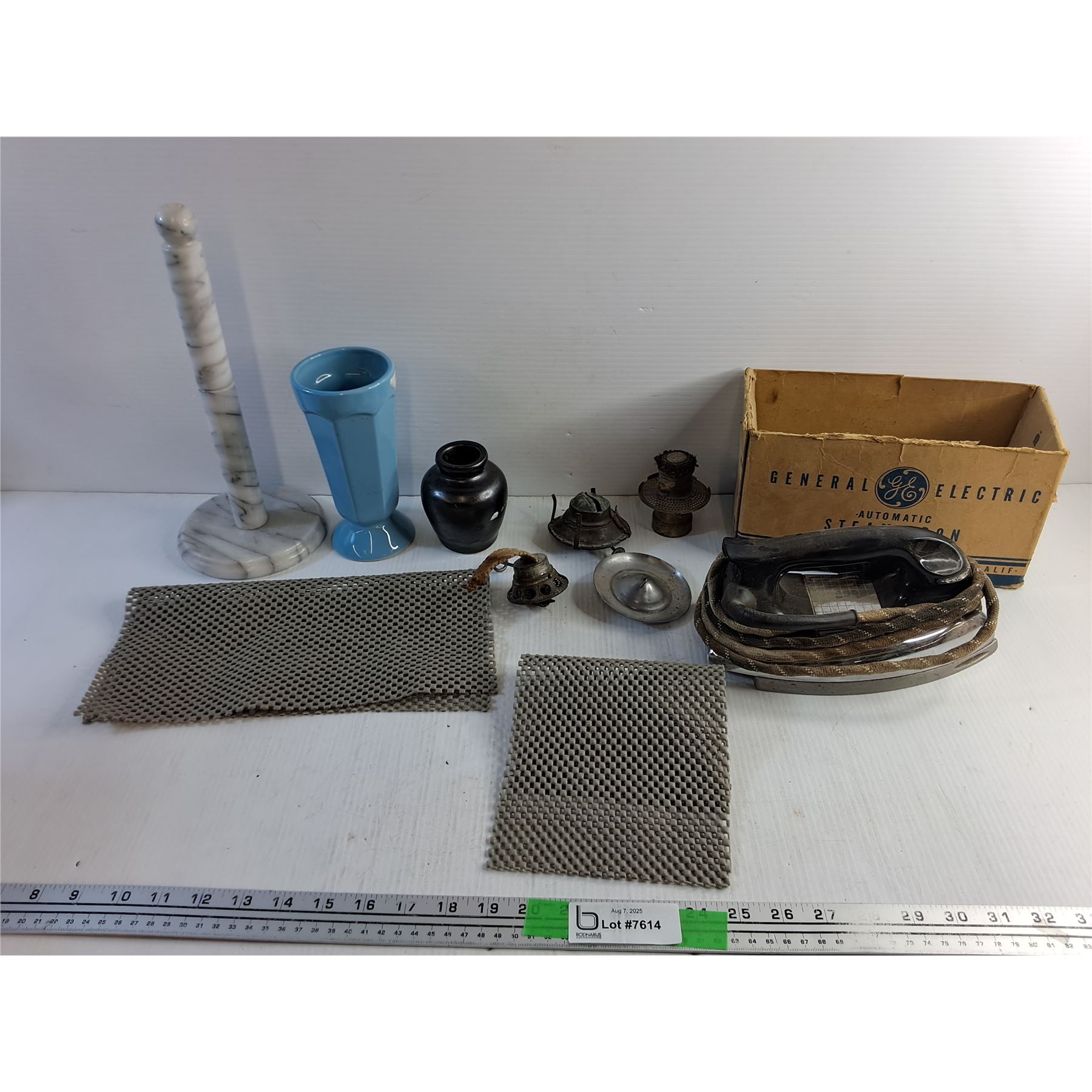 Paper Towel Holder, Ceramic Vase, General Electric Automatic Steam Iron - As Is and Non Slip Mats