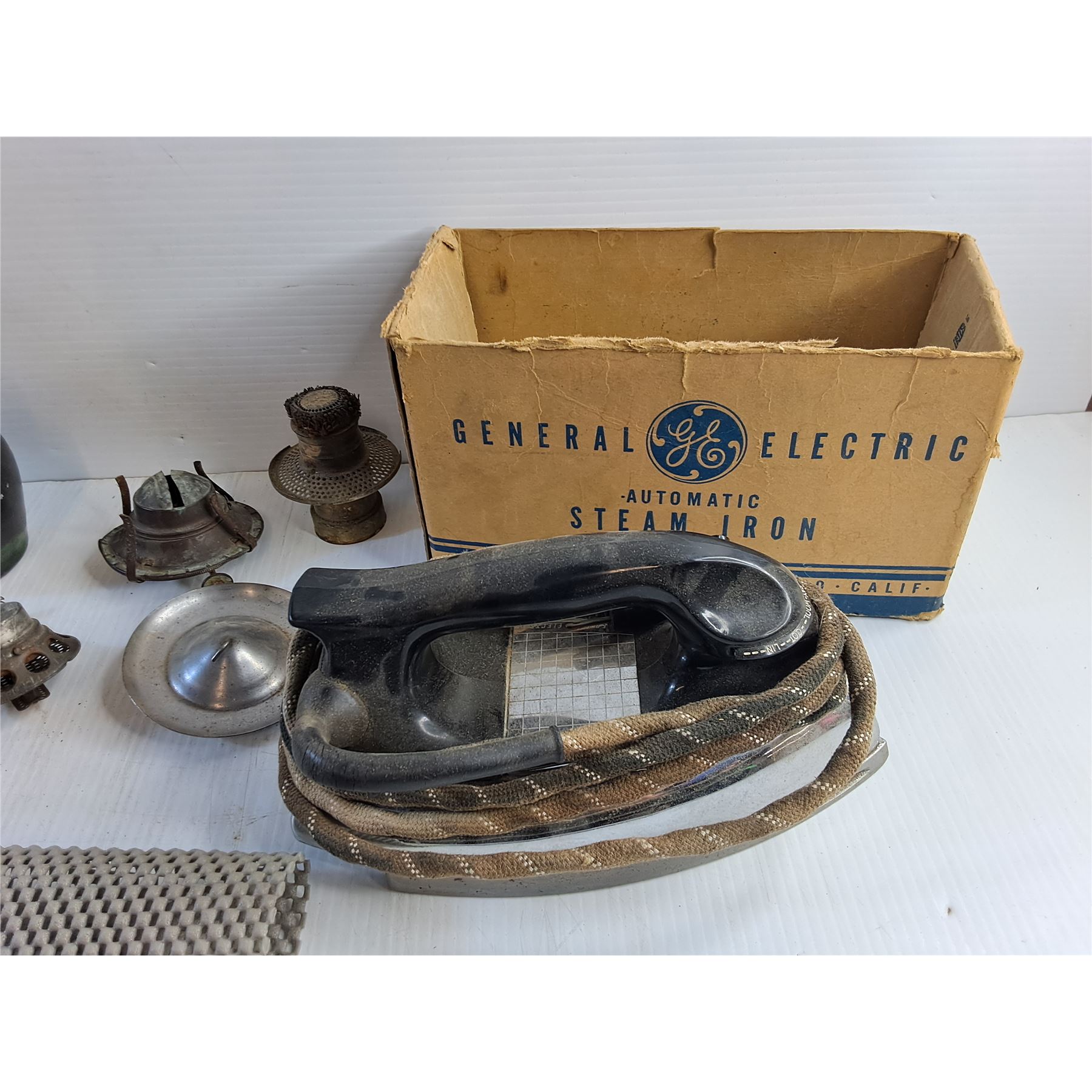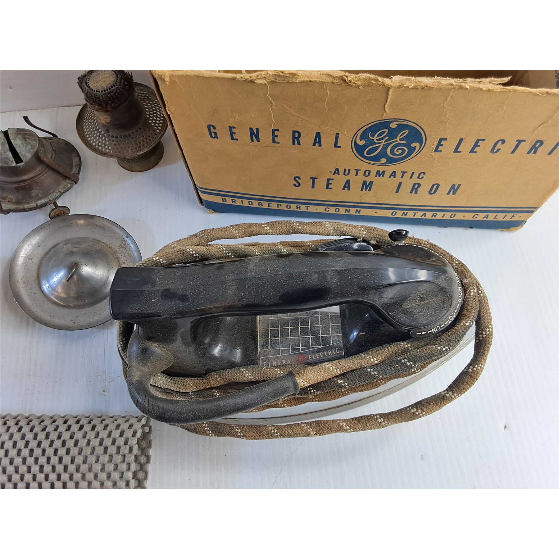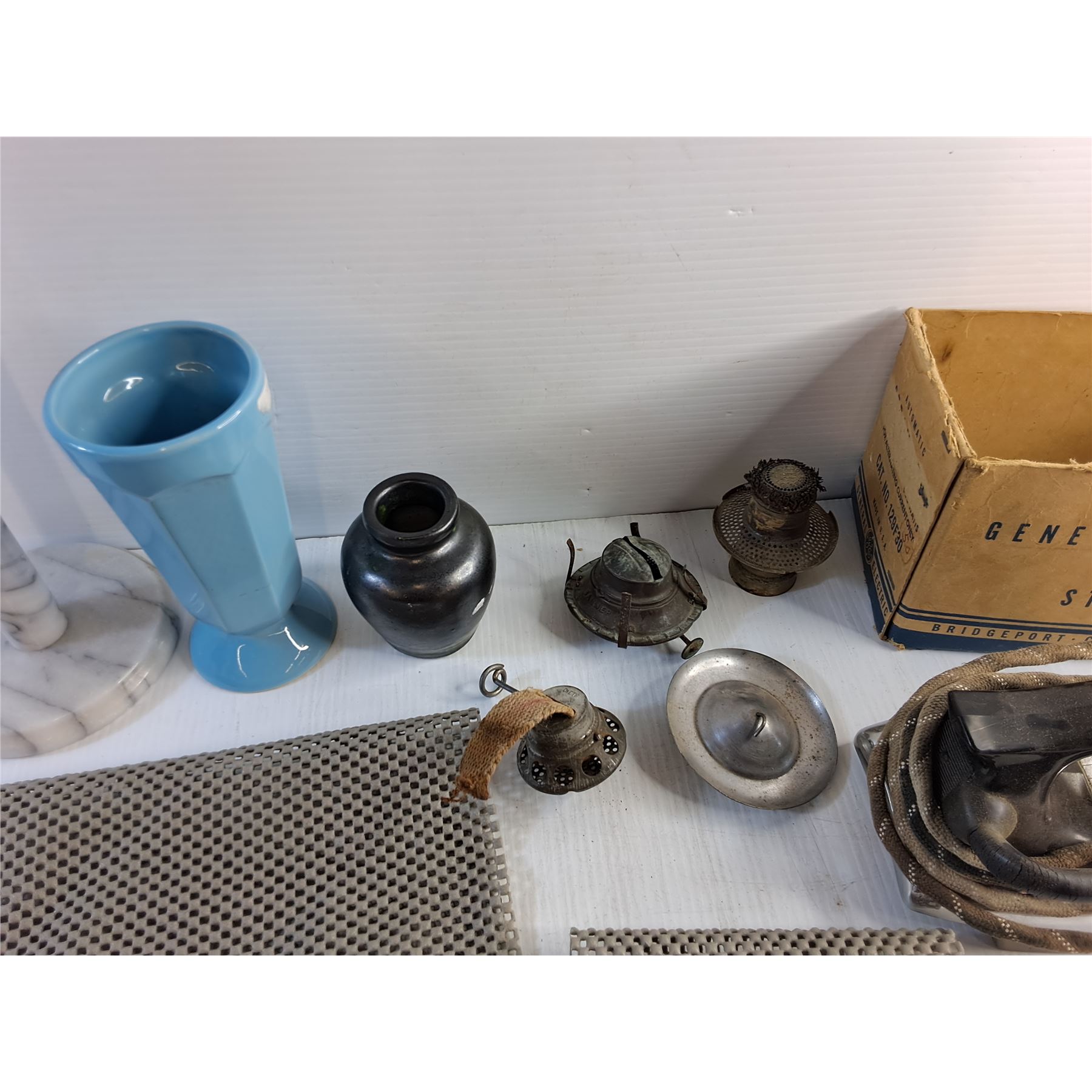 Paper Towel Holder, Ceramic Vase, General Electric Automatic Steam Iron - As Is and Non Slip Mats
