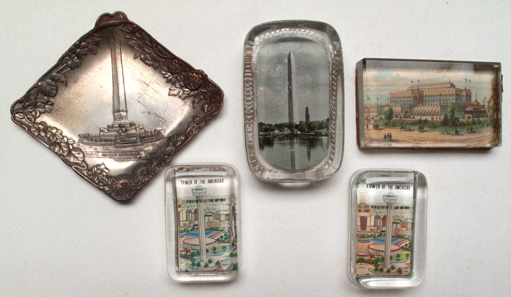 Metal piece of Washington Monument, 4 glass paper weights. 2 of Tower Of The Americas, Washington Monument, and Chicago's Crystal Palace.City: BuffaloCounty: State: NY