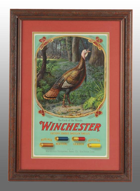 Professionally framed with original metal band on top. Reads "The Cock of the Woods" on the beautifully colored image with no fading. Condition (Near Mint Plus). Size Framed: 25 - 1/2" x 36".