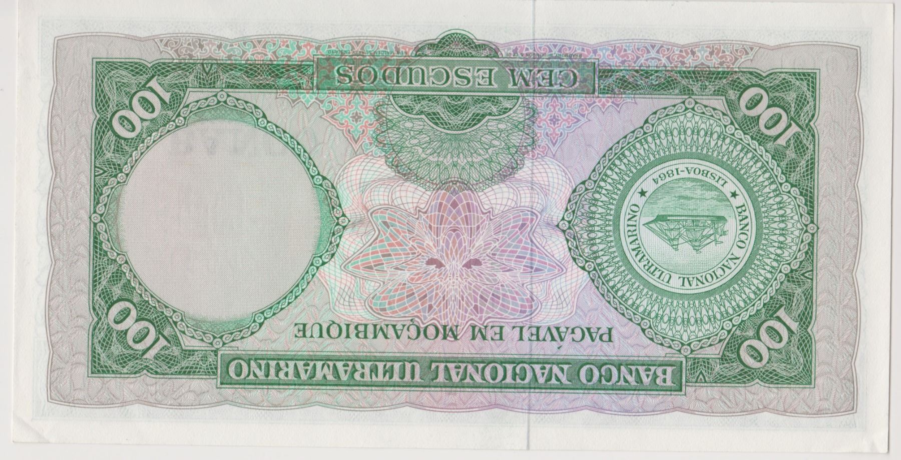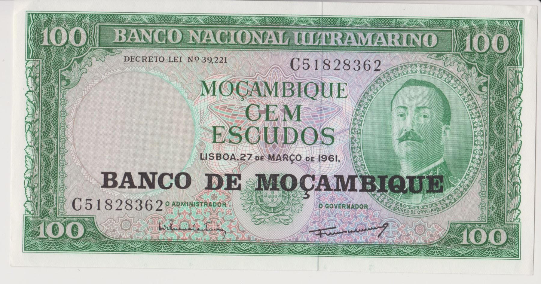 Paper currency, Mozambique 100 Escudos, ex cond.