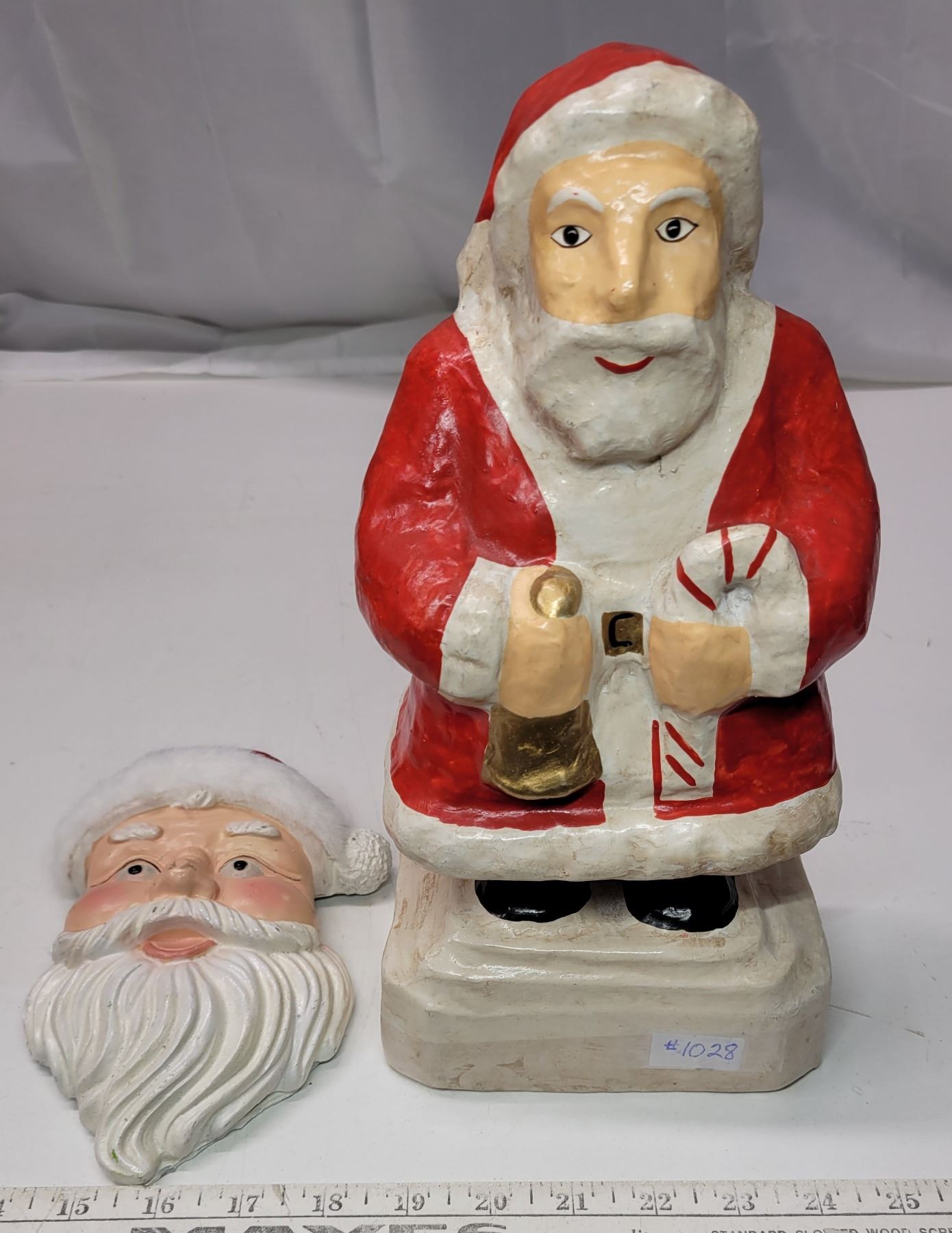Paper mache Santa and Santa Chalkware face