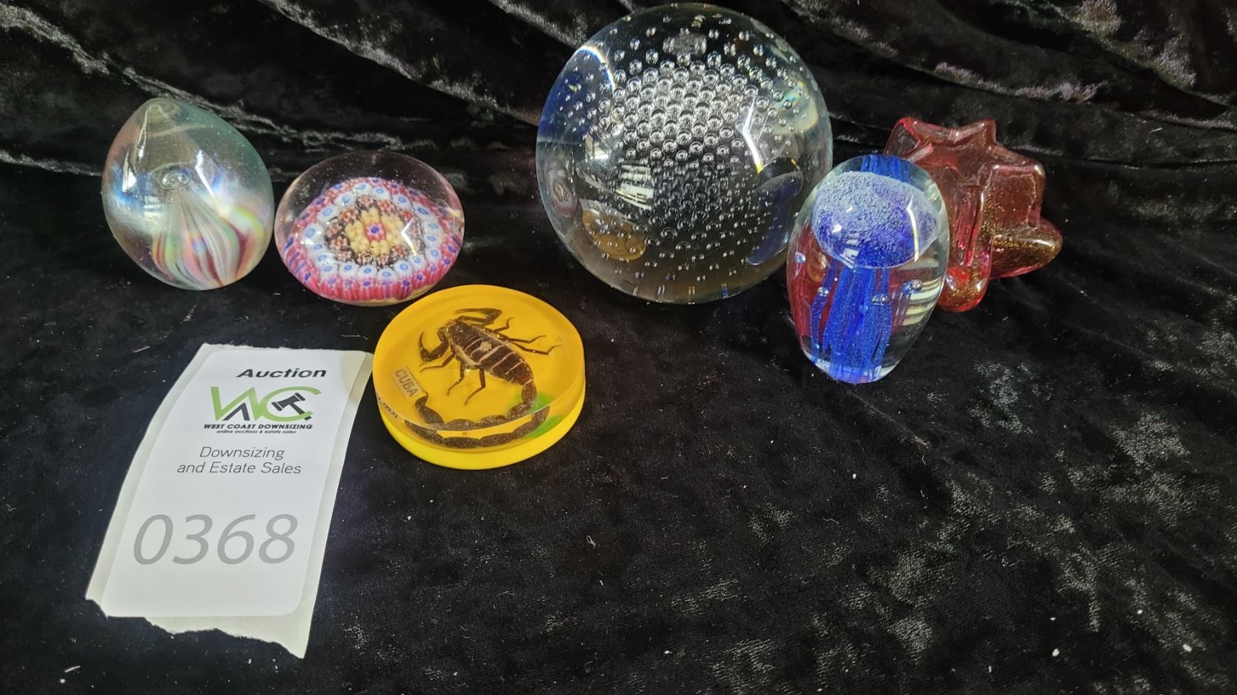 Glass & lucite paperweights Pickup at 9 am