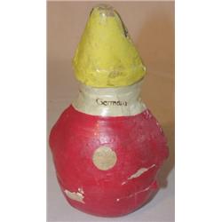 Papier-Mache clown rollie-pollie figurine. Stands 6 1/4" tall and has minor loss of paint around body. Marked Germany on back.