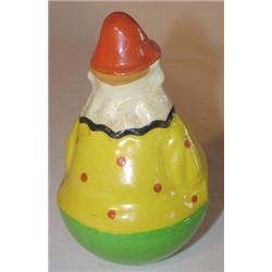 Papier-Mache clown rollie-pollie figurine. Stands 5 1/2" tall and marked on bottom "Made in Western Germany". Excellent paint and condition.