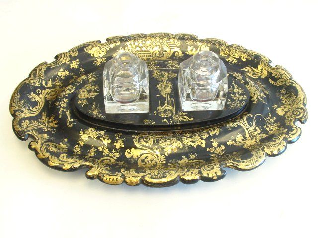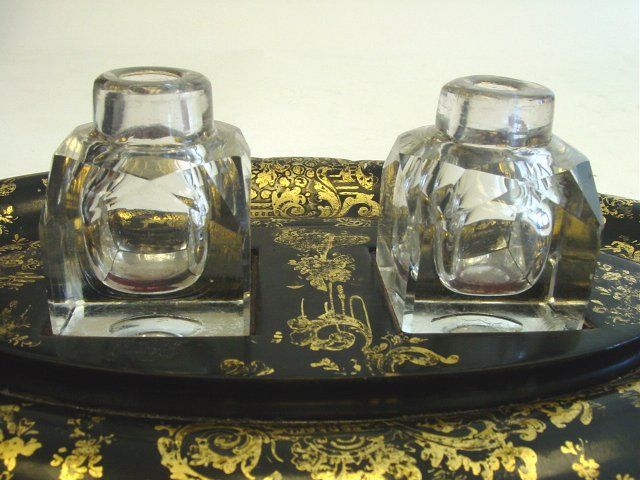 Covers to inkwells missing. Approx. 15" x 10" Please read our terms of sale.