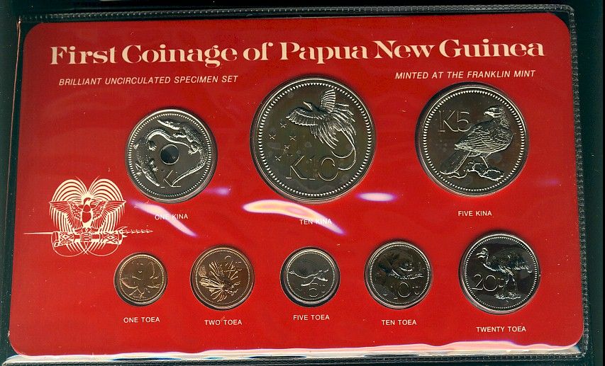 Papua New Guinea Mint Sets Set 1975(2) & 1976. All 3 sets come in original packaging. Issued by the Franklin Mint Lot.