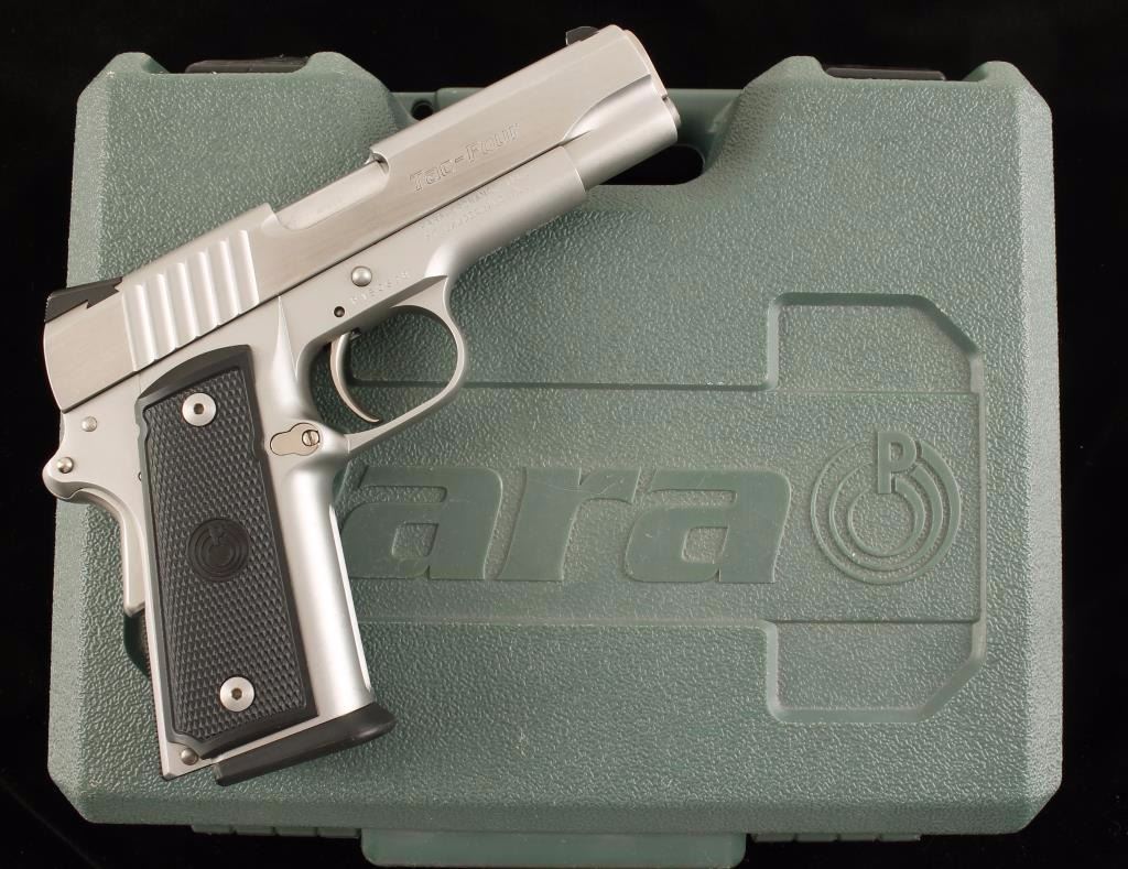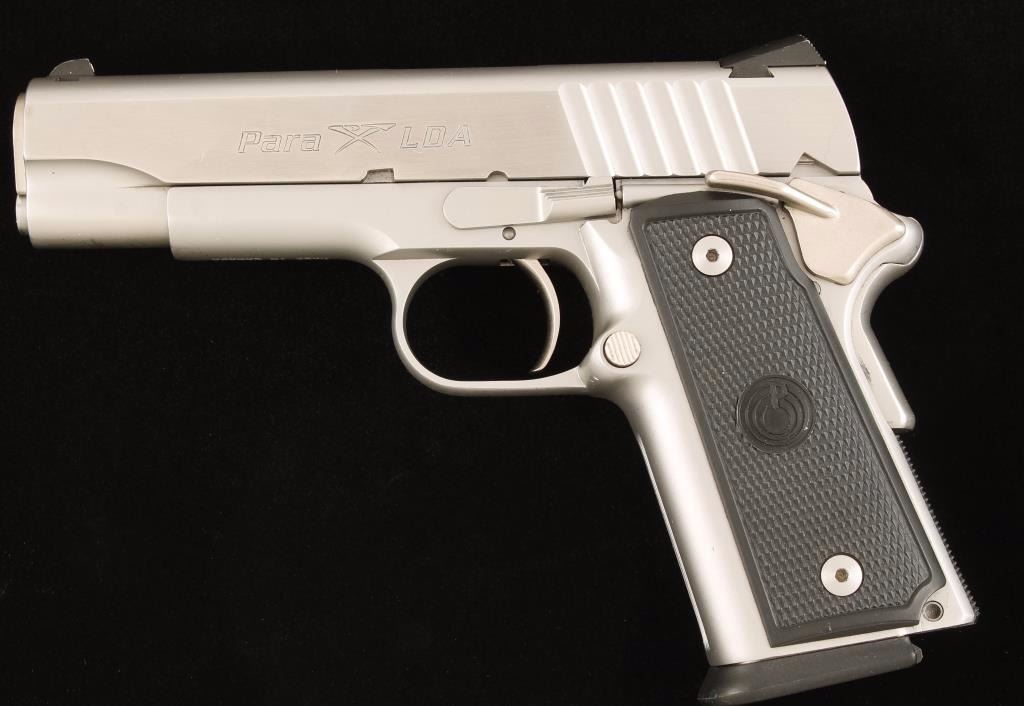 SN: P150638 Canadian made semi-automatic 'light double action' pistol chambered in .45 Automatic Colt Pistol. Features a 4.25" steel barrel, stainless steel slide, satin finished frame, dovetailed front & low-mount rear three dot adjustable sights, serrated slide, thumb safety, flush hammer, smooth trigger, bobbed beavertail, grip safety, 10 round magazine and checkered black hard plastic grips. Includes original case, video and documents. Finish shows little to no wear with only observed wear on sights and light scuffs on top of the slide. Action is strong and bore is impeccable. Condition is excellent. ***Modern Firearm***