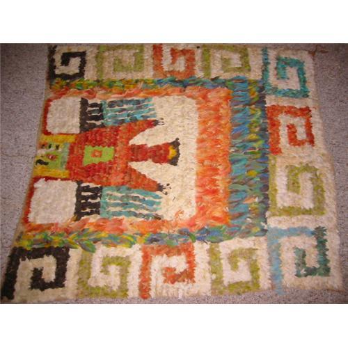 A beautiful Paracas feather mantle. 41" x 45" with textile depicting a