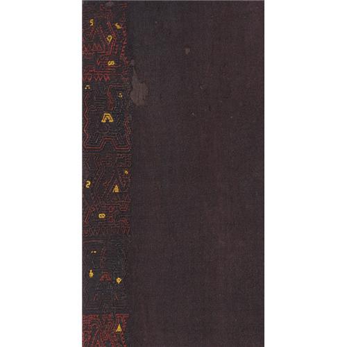 <B>Segment from a Mantle</B></I><BR>Paracas<BR>300 - 100 B.C.<BR>Camelid fiber, cotton<BR>Height 87 3/4 in. Width 18 1/8 in.<BR><BR>This mantle segment includes one long side of embroidered designs and small amounts of the two adjoining embroidered edges. The ground is a very dark brown plain weave and the embroidery is done in dark brown, deep red, and infrequent accents of gold. Two highly conventionalized dancer motifs alternate along the edge, and each motif repetition reverses orientation from those nearest in either direction. The condition is poor, with large loss areas in the undecorated portion as well as considerable losses in the embroidered areas.<BR><BR>Provenance<BR>Bonhams & Butterfields, San Francisco: sale 7437E, 9 June 2003, lot 5132, pp.32-34, ill.p.32<BR><BR> <BR><BR><B>Important notice:<