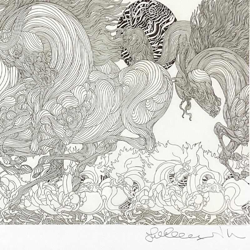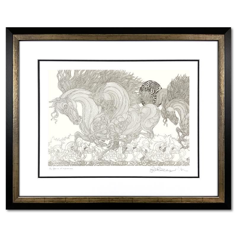 "Parade" is a limited edition etching on paper by Guillaume Azoulay, numbered 3/3 and hand signed by the artist. This piece comes custom framed. Includes Letter of Authenticity. Measures approx. 32" x 26" (frame), 20" x 14" (image).