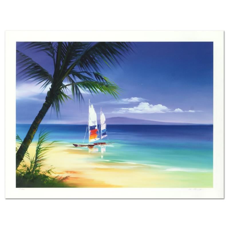 "Paradise Dreaming" is a limited edition giclee on paper by H. Leung, numbered and hand signed by the artist. Includes Letter of Authenticity. Measures approx. 39.5" x 30" (border), 35" x 26" (image).