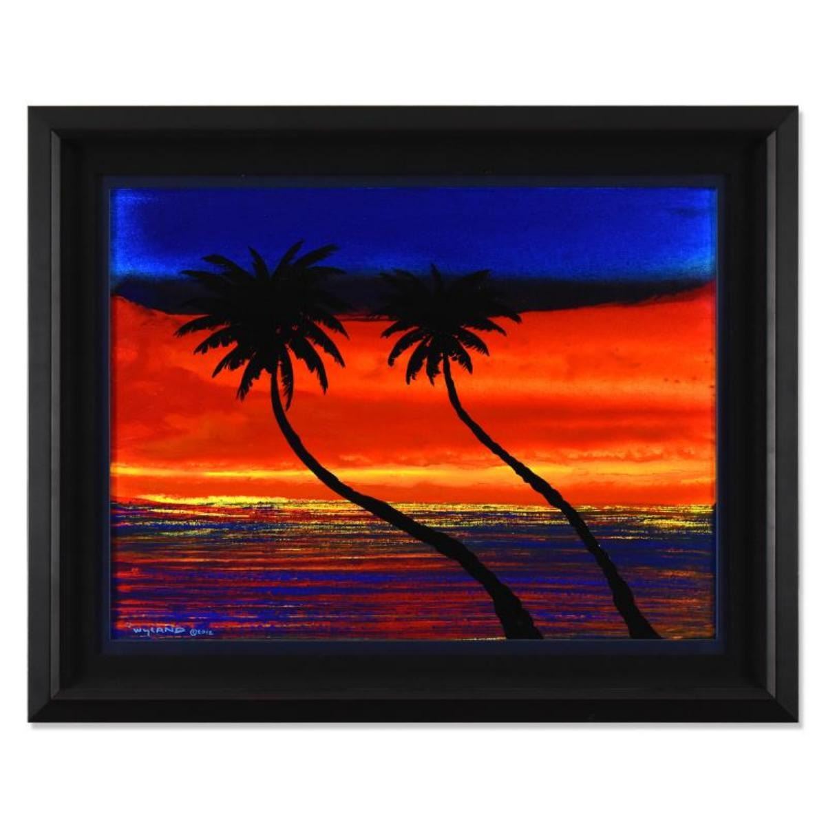 Paradise Found 34 by Wyland Original. "Paradise Found 34" is an original oil painting on canvas by Wyland, hand signed by the artist. This piece comes framed. Includes Letter of Authenticity. Measures approx. 29.5" x 23.5" (framed), 23.5" x 17.5" (image). Please note: There is wear on the corners and edges of the frame.