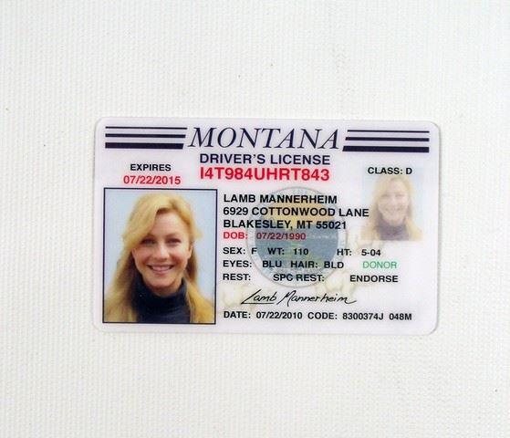 Lamb (Julianne Hough) screen used, hero, Montana Drivers License.