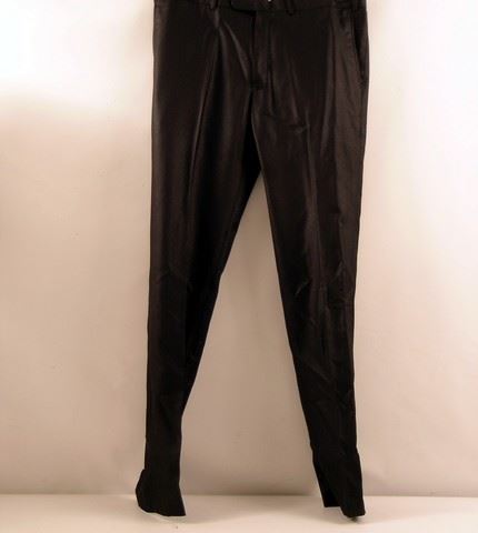William (Russell Brand) screen worn, hero, white long sleeve button front 'Eton' slim fit button front 'Eton' dress shirt, (size 15 - 38) and black wool flat front zipper fly slightly shiny 'Kim Zaun' custom made pants. Includes wardrobe tag!