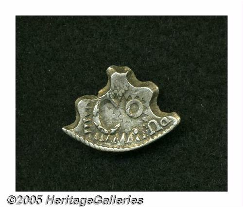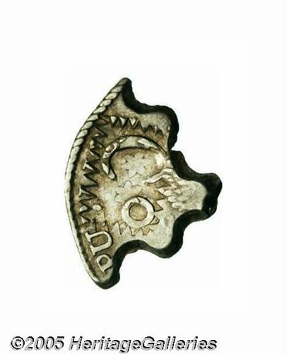 <B>Republic 1 Real Counterstamp, </B></I>similar to KM-C2, but the counterstamp is "C O" for Compania Orientale, the War of the Triple Alliance, 1865-1870. The host coin is a Bolivia 4 Soles, cut in crenulated edges and stamped C-O on one side and a guilloche of wavy lines on the other. Rare type and a remarkable example which must be one of the finest known. Choice toned XF and perfect weight at 3.15 grams.