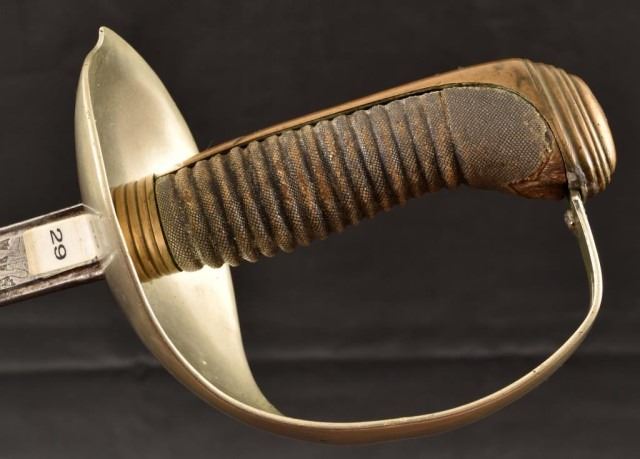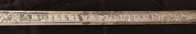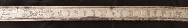 Paraguay. Etching on both side blade in poor condition. Obverse - Knight holding sword, "ARTILLERIA FABRICA DE" , reverse side Knight holding spear, "TOLEDO ANO DE 1851", bird head grip, fish skin cover, wire wrap, "J