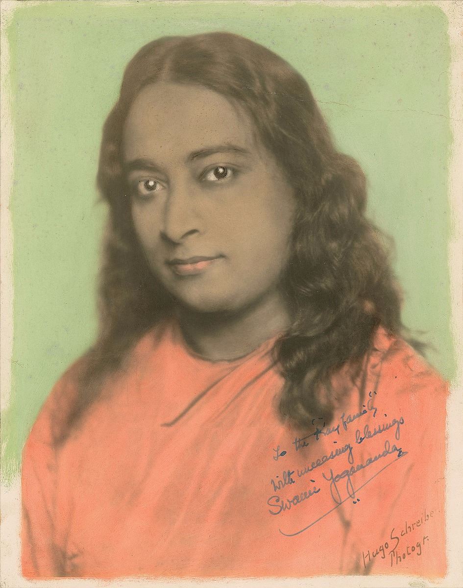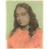 Indian yogi and guru (1893–1952) who introduced millions of westerners to the teachings of meditation and Kriya Yoga through his book Autobiography of a Yogi. Hand-colored vintage matte-finish 7.5 x 9.75 portrait by Hugo Schreiber, signed and inscribed in fountain pen, "To the 'Kay family,' with unceasing blessings, Swami Yogananda.” In fine condition, with a crease to the upper right blank area extending into his hairline. Pre-certified PSA/DNA.