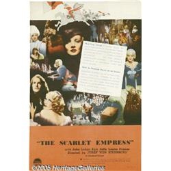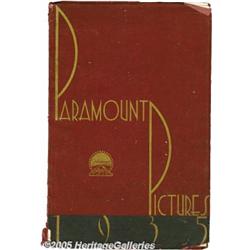 <B>Paramount Exhibitor Book- Australian (Paramount, 1935)</B></I> 48 Pages. This is a gorgeous book filled with full color photos of the great stable of stars during this heyday. Though this has a front section which pictures the Paramount executive council for Australia and New Zealand, one would have to think that these were added for the overseas edition and that this was what was distributed stateside as well. There is just so much tremendous artwork on each page and printed on a heavy ribbed stock paper. Two page layouts on "Scarlet Empress" and "Cleopatra." This book does show wear on the front cover, a clip from the short subjects page and several pages have begun to separate from the spine. Overall still in very presentable condition. Fine.