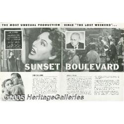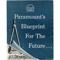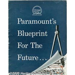 <B>Paramount Exhibitor Book (Paramount, 1950)</B></I> Multiple Pages. It was a great year for Paramount and this book gives every reason why. There is a two- page spread on each of these hits and more, "Sunset Boulevard," "Samson and Delilah," and "A Place in the Sun." Also included is a spread on the short subjects from Popeye to Casper. As well as a page talking about productions to come such, "Human Interest Story" which became "Ace in the Hole," and one called "The Keystone Girl" about the story of Mack Sennett and Mabel Normand starring Betty Hutton, which was never made. The book is in great shape with a very clean interior and some stress marks on the dark blue cover. Fine+.