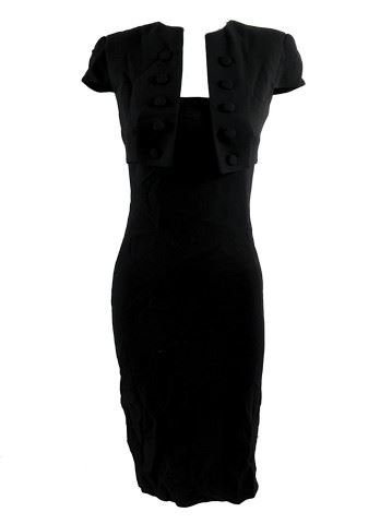 Dr. Judith Bolton (Embeth Davidtz) screen worn, hero, black wool cap sleeve attached with a row of five covered buttons on each side 'Alexander McQueen' dress. Includes wardrobe tag.