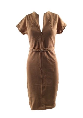 Dr. Judith Bolton (Embeth Davidtz) screen worn, hero, peach/beige ribbed polyester cap sleeve Mandarin collar with a zipper in the front with self belt 'Diane Von Furstenberg' dress. (size 2) Includes wardrobe tag.