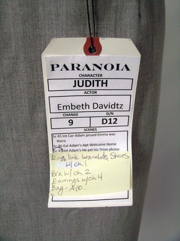 Paranoia - Judith Bolton (Embeth Davidtz) screen worn, hero, light grey with scoop neck and self belt 'Calvin Klein' dress. (size 2) Includes wardrobe tag!
