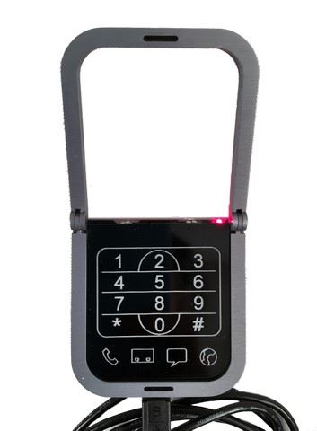 Jock Goddard (Harrison Ford) screen used, hero, metal with blue LED lights flip up futuristic cell phone with plastic screen and black case. (approx. 5" x 2 1/2" open)