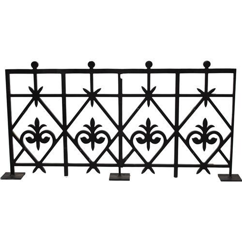 <B>Wrought Iron Parapet Section from "Giant."</B></I> A 65" x 32" piece of the wrought iron parapet section from the Reata home featured in <I>Giant.</B></I> The house was actually a two-sided facade built by Warner Bros. and shipped in 60 sections to the Marfa, Texas shooting location on a series of flatcars. This piece and others were salvaged by Texas Women's University professor Dr. Warren Casey, after the set was razed in 1957. In Excellent condition with some wear and a couple of cracks and elements missing due to age and use. Also included is a framed 11" x 14" b&w photo of the grand homestead as seen in the movie. <I>From the James Dean Museum archive.</B></I>