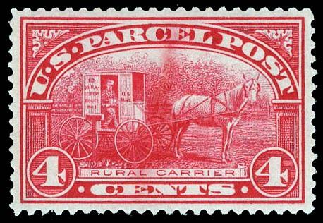 Parcel Post, 1913, 4¢ Rural Carrier. Scott Q4. XF-Sup